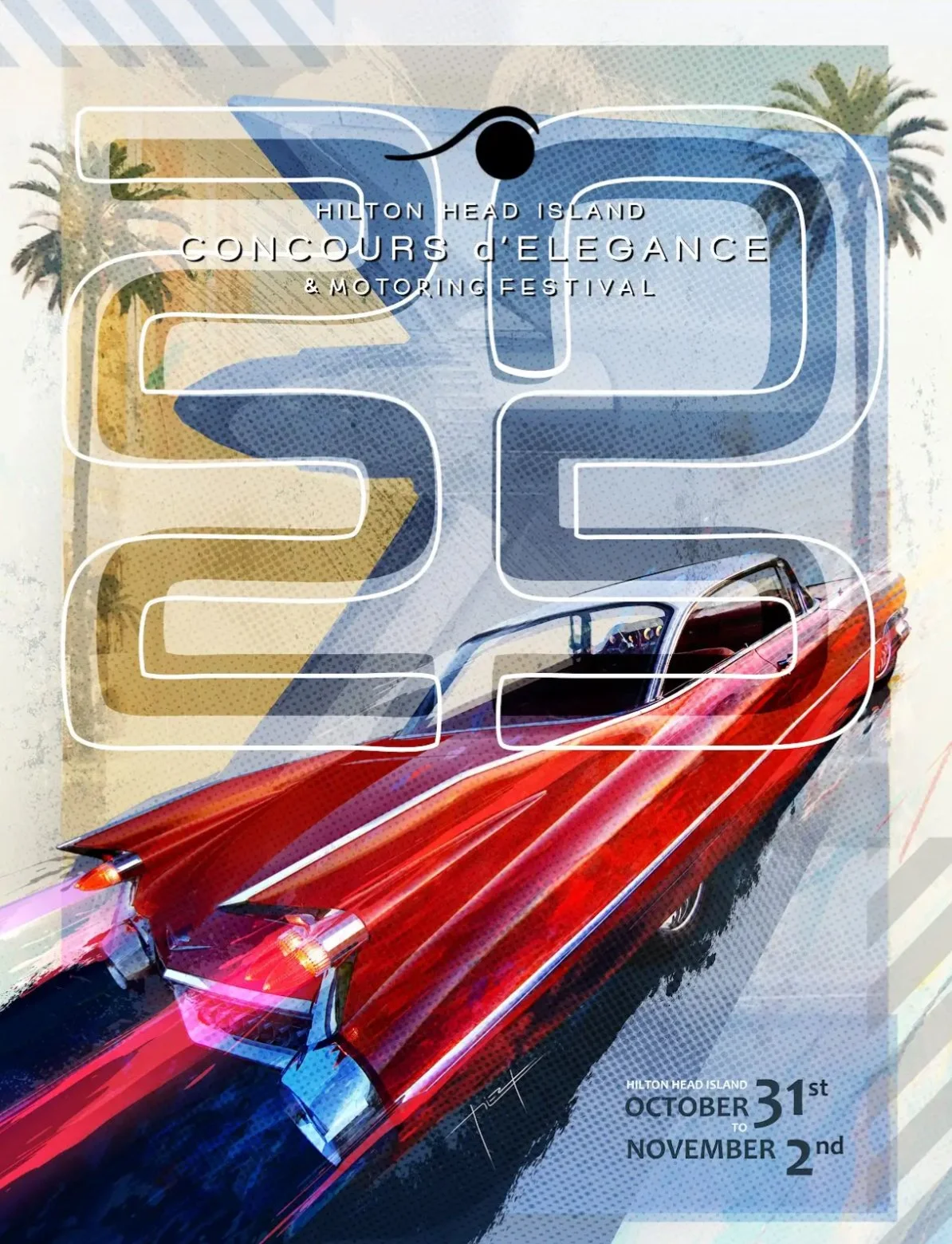 The Hilton Head Island Concours d’Elegance & Motoring Festival is proud to unveil its official 2025 poster — a vibrant, powerful piece of art created by internationally acclaimed automotive artist Caesar.